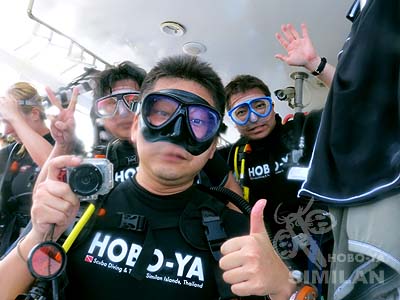今回はボン島~タチャイ島~シミラン諸島という1泊2日のショートトリップでした。お客様は福岡の仲良し3人組☆Sさん、Iさん、Yさん。みなさんのリクエストはやっぱり・・・ジンベイザメとマンタレイ。1本目から可能性はあったのですが・・・見たい、会いたいオーラが強すぎたのか・・・今回も・・・(=_=)チーン