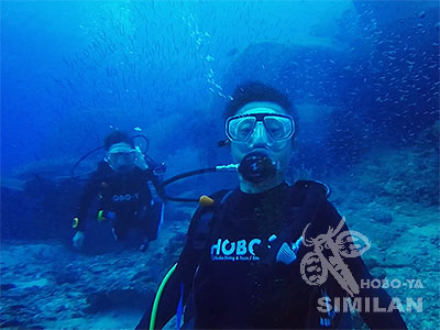 2017年10月27日〜28日の1泊2日の日程でシミラン諸島-へのショートクルーズに行ってきました。今回は、若干並みがあり、行きのスピードボートは少しはねたものの、シミラン諸島につくと、波は穏やか。お天気も上々でした。1日目は、ウェストオブエデン、ディープシックス、ノースオブエデンと、7番の島のポイントを網羅、。今年のシミラン諸島は、魚影が濃く、リーフに点在するサンゴの根には、ことごとくスカシテンジクダイやカタクチイワシの群れがゴッショリと付いています。それを狙って、リーフに集まる、カスミアジやイソマグロも多く、水中はとても賑やか。2日目の早朝ダイブ、エレファントヘッドロックでは、捕食のためにアグレッシブに泳ぐアジの群れを、2本めのスリーツリーでは、渦を巻くバラクーダの群れに遭遇することができました。まだまだシーズン始まったばかりのシミラン諸島、今シーズンは魚影の濃さに期待です。
