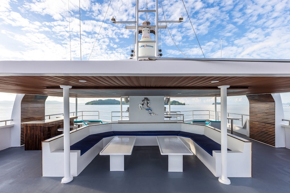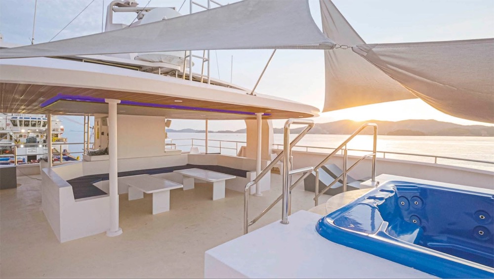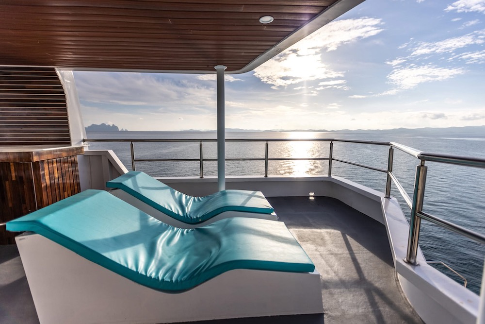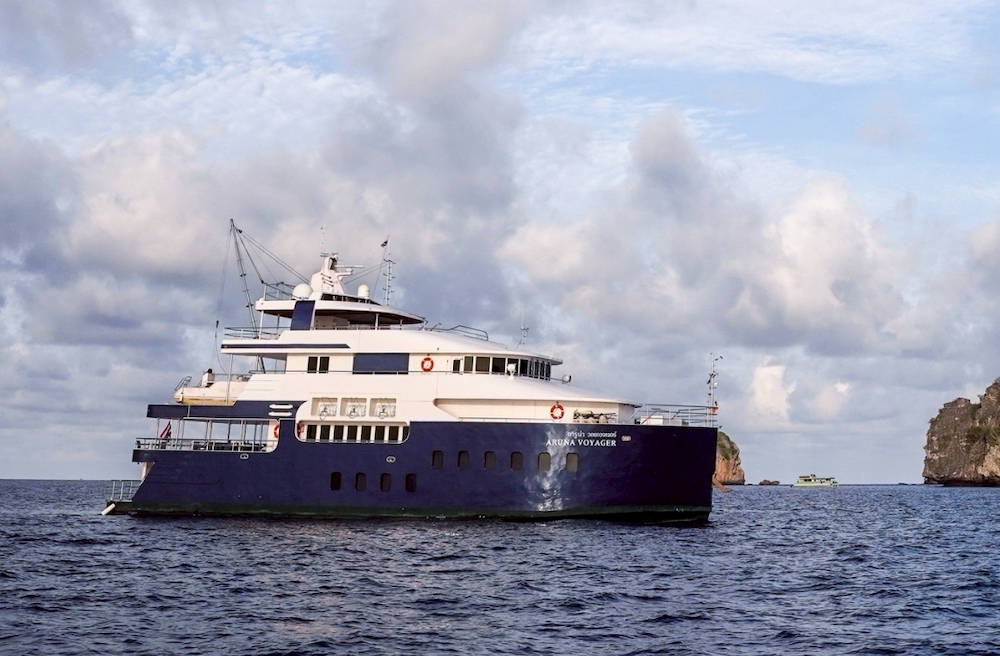 豪華ダイブクルーズ船「アルーナ号」で行く、シミラン諸島〜リチェリューロックを巡るダイブクルーズ。全長36m・幅12m、5階建ての堂々とした大型船には、全室バスルーム&窓付きの快適なキャビンを完備。ナイトロックス対応に加え、カメラ専用スペースや充電ステーション、広々としたダイブデッキなど、ダイバーが快適に過ごせる設備が充実しています。個人旅行にも嬉しいシングルキャビンも用意。一流シェフが手がけるバラエティ豊かな食事と、きめ細やかなサービスがさらに贅沢なクルーズを彩ります。